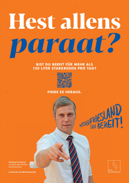 Auf großformatigen Plakaten im gesamten Kreisgebiet rufen Bürgermeisterinnen und Bürgermeister dazu auf, kleine, aber wichtige Vorkehrungen zu treffen – vom Anlegen von Notvorräten über die Installation einer Warn-App bis hin zum Wissen um den nächsten Notfall-Infopunkt. Immer wieder fragt die Kampagne auf Plattdeutsch: "Hest allens paraat?"