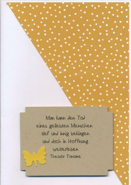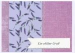 Meine Partnerin merkte eines Tages bei der Suche nach einer Trauerkarte, dass ihr keine so recht gefiel. Da beschloss sie, selbst welche zu basteln. Mittlerweile ist daraus ein buntes Angebot an Grußkarten zu den verschiedensten Anlässen geworden. Sie weicht dabei oft ab von klassischen oder traditionellen Wegen und hat dadurch einen eigenen, kreativen Stil gefunden. Über ihr umfangreiches Angebot hinaus nimmt sie gerne Anregungen aus ihrem Kundenkreis auf und gestaltet auch auf persönlichen Wunsch.